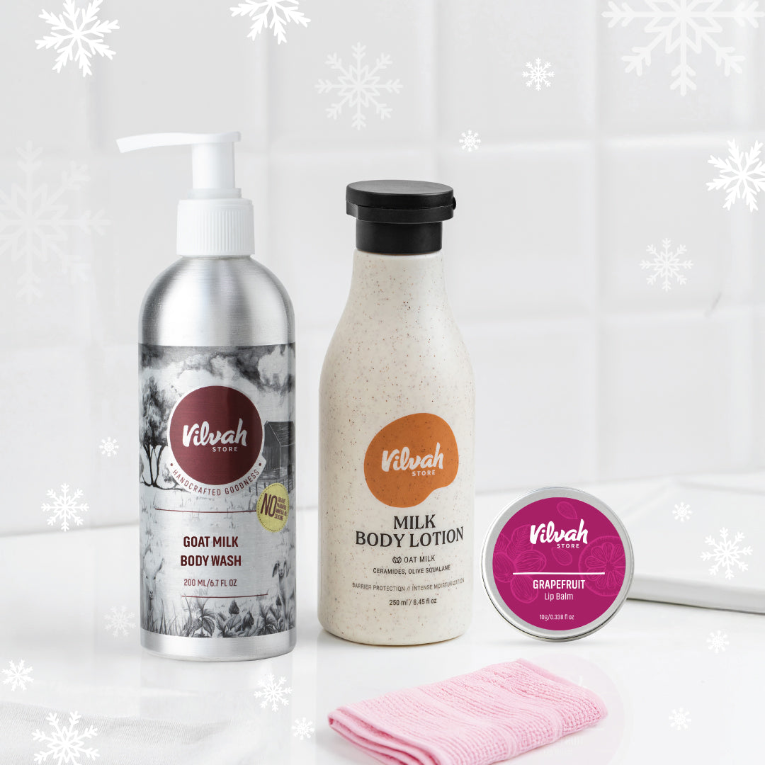 The Goat Milk Body Wash softens my skin, and the Milk Body Lotion keeps is super hydrating. The Grapefruit Lip Balm is my favourite. Must-have for winter!❄️